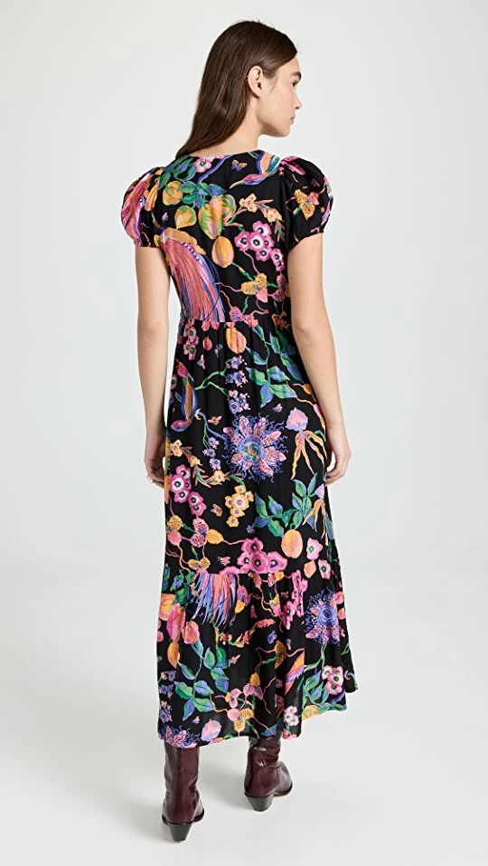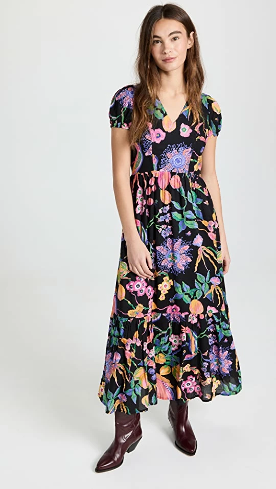 - Gathered waist and ruffle hem