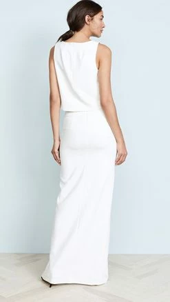 This polished Black Halo pencil skirt improves on the classic silhouette thanks to a faux wrap front that allows for easier movement.