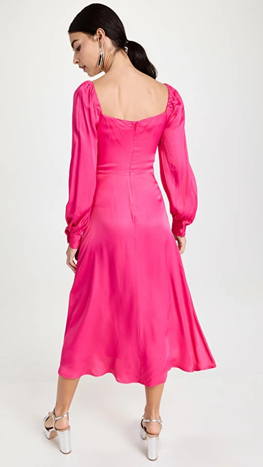 Have a pretty-in-pink moment in this silky, occasion-worthy FARM Rio dress. This lovely silhouette is distinguished by a double bandeau design at the bodice, and finishes with a slightly relaxed skirt. To complete your outfit, just add a pair of heeled sandals.