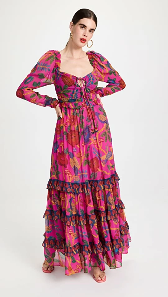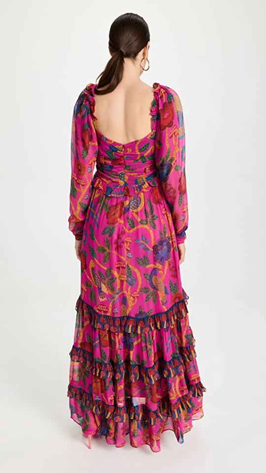 - Ruched bodice with hook-and-eye and hidden zip at back