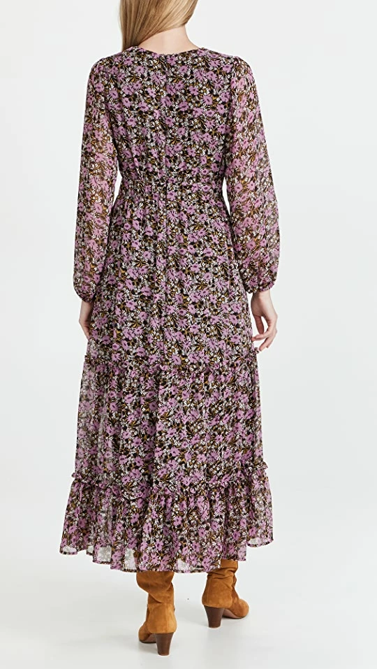 An effortless and pretty addition to your summer-to-fall wardrobe, this Lost + Wander dress features puff sleeves, a floral print, and a tiered skirt for a midi that works well with anything from simple flats to knee-high boots.