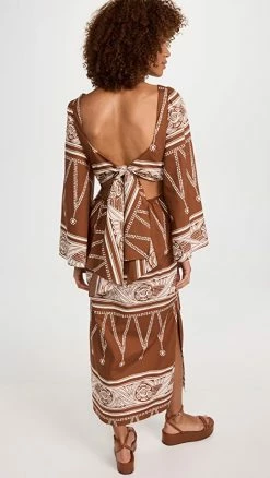 Best Sale ???? Johanna Ortiz Underwater Sanctuary Midi ???? Dress Ornaments Maya Ecru/Tabasco ✔️
