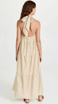 Outlet ???? Theory Halter Tier Maxi ???? Dress Flax ????