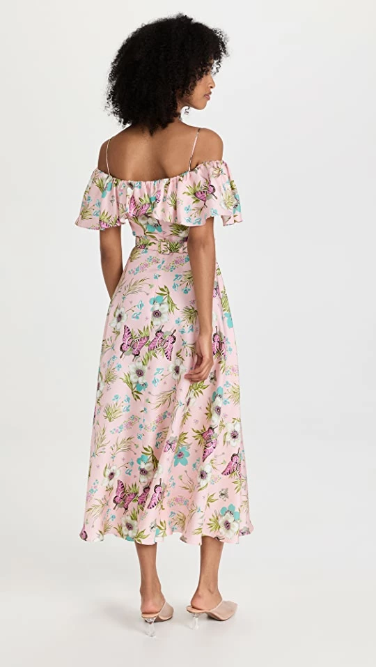 - Off-shoulder elastic neckline and short butterfly sleeves