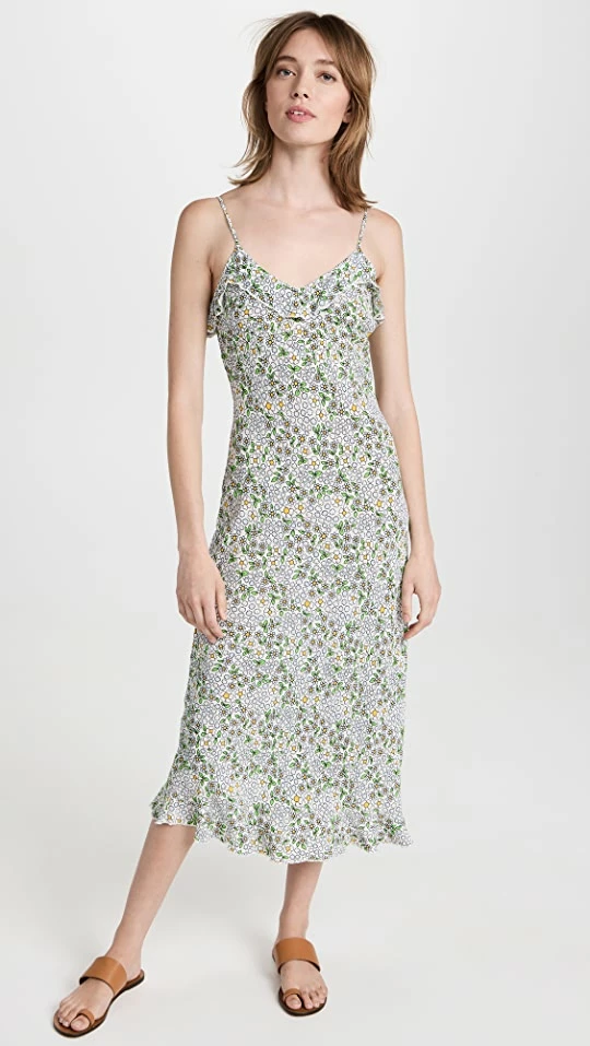 Rolla’s delivers a slinky slip dress just in time for the season in a lovely floral print and finished with flirty ruffle trim.