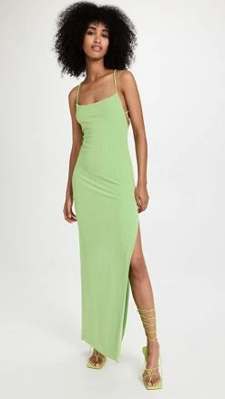 This light-green Rumer maxi dress cuts a classic special-occasion silhouette with a thigh-high side slit and a strappy back. Go with heeled sandals to round out your outfit.