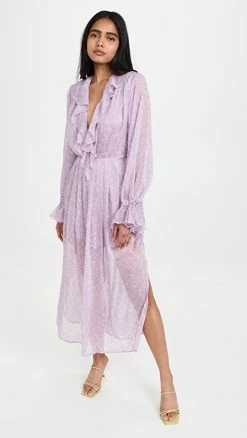 - V neckline and gold-tone button placket with flounce trim