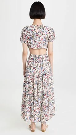 Cheapest ???? ATM Anthony Thomas Melillo Slub Palm Print Short Sleeve Maxi ???? Dress White Combo ⭐