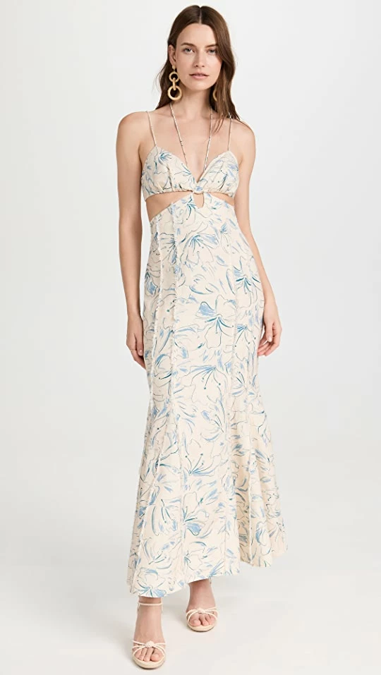 This Significant Other dress draws the eye with a number of unexpected elements, like a strappy neckline, a wraparound cutout, and touches of frayed trim. Add the heeled sandals of your choice to round out your look.
