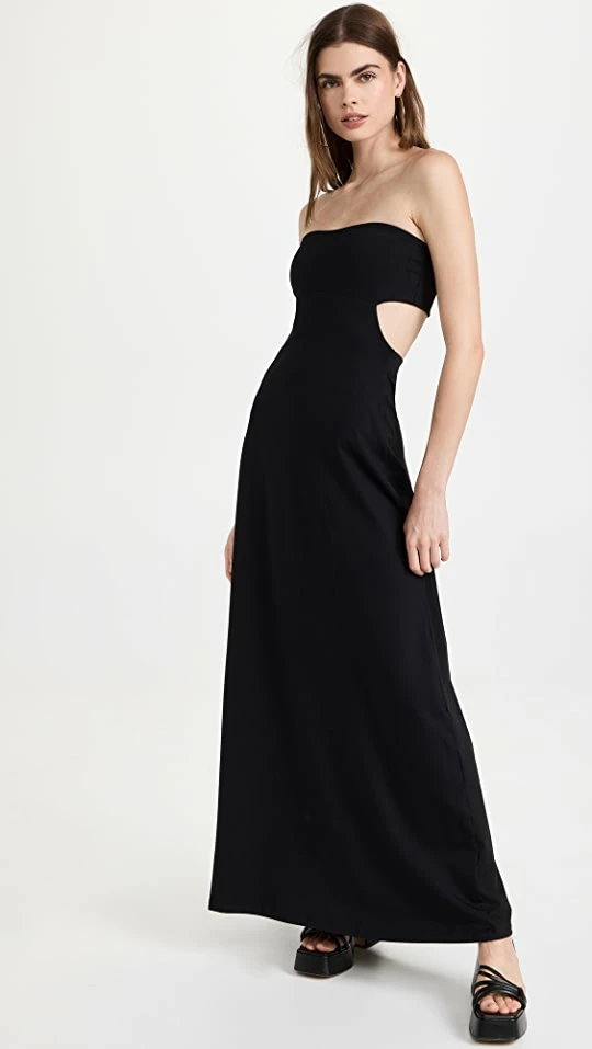 With a cutout back and a strapless silhouette, this Susana Monaco black dress has an elegant profile, but still feels comfortable thanks to soft jersey fabric. Complete your look with tonal heels.