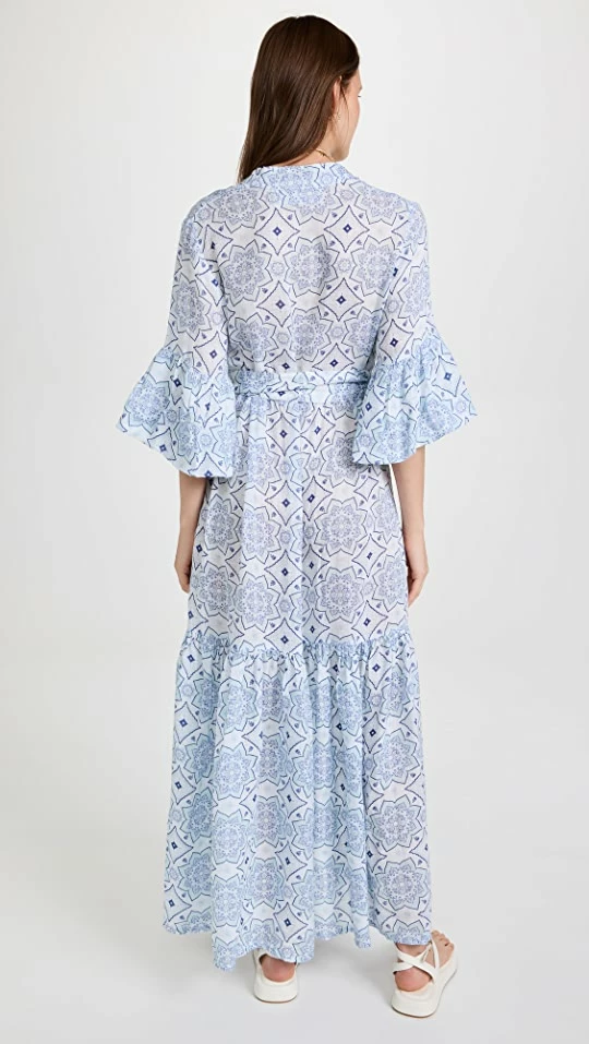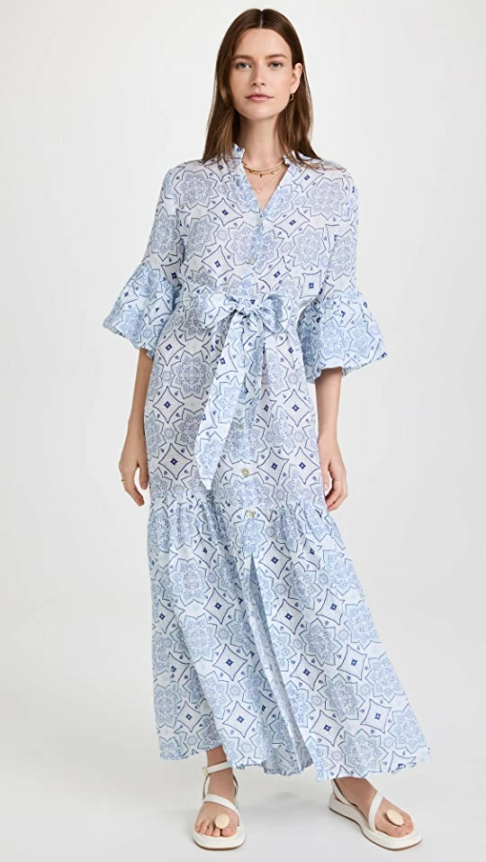 Kaleidoscopic patterning covers this sumptuous Temptation Positano linen dress, a summer-friendly piece with waist-defining ties. A flat sandal is all you’ll need to complete your outfit.