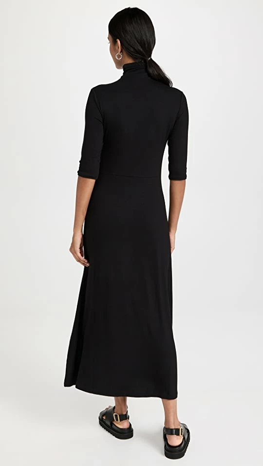 Tasteful and timeless, this Vince black turtleneck dress is designed to gently hug your figure through the hips before finishing with a flared skirt. Go with tonal footwear and silver-tone jewelry to complete your look.