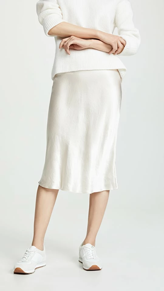 This satiny, simply colored Vince slip skirt is an easy way to make a low-key top feel more special. Sandals and sneakers work equally well with this versatile silhouette.