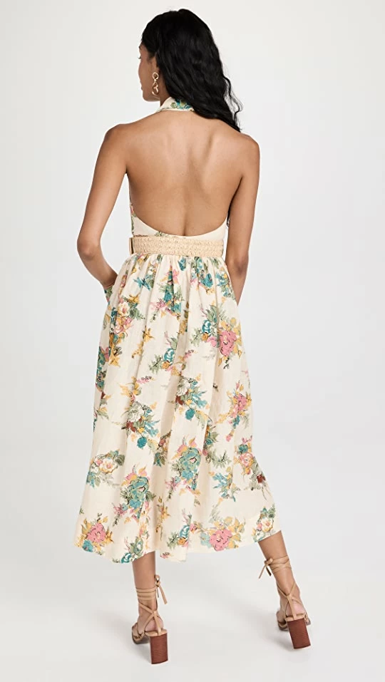 - Collared halter-style neckline